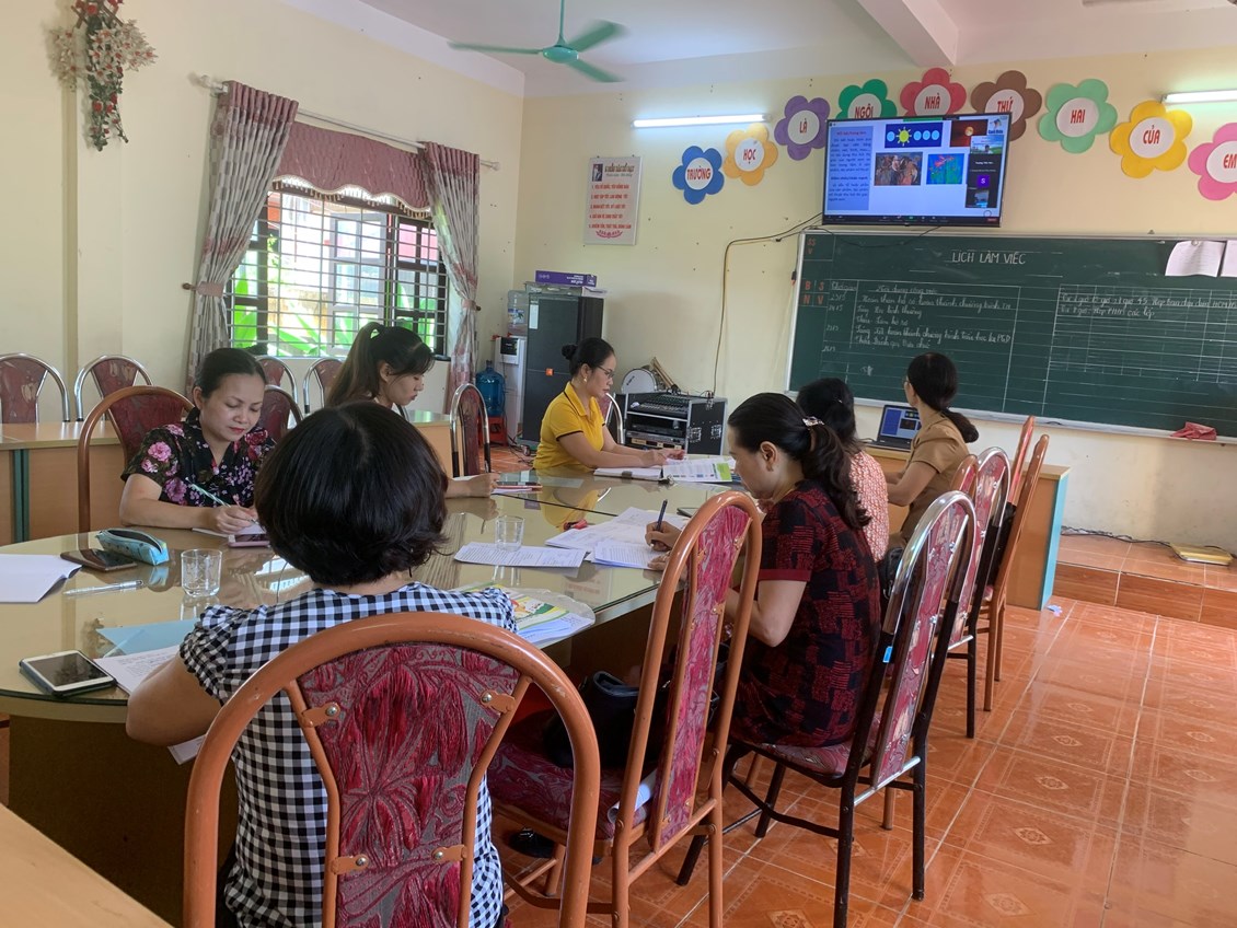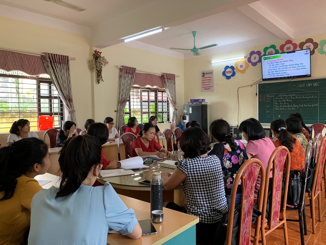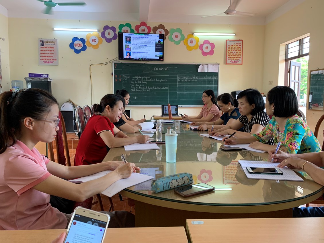 Ban giám hiệu, giáo viên cơ bản và giáo viên chuyên biệt dự kiến giảng dạy lớp 3 năm học 2022-2023 của nhà trường tham dự tập huấn nghiêm túc, đầy đủ tại điểm cầu trực tuyến tại trường Tiểu học Thuỵ Hương. Các thầy cô giáo trong nhà trường đã tham gia tập huấn với tinh thần cầu thị, nghiêm túc, trách nhiệm cao, với mong muốn tích lũy được nhiều nhất những kiến thức, kĩ năng cần thiết để triển khai bộ sách đạt được hiệu quả cao.