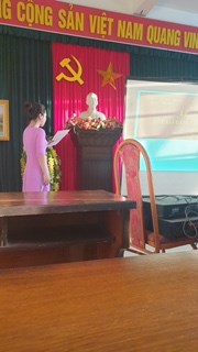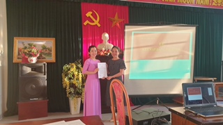 Đồng chí Vũ Thị Hải Yến - Bí thư chi bộ - Hiệu trưởng nhà trường đã công bố và trao quyết định của Đảng ủy Huyện về việc kết nạp Đảng cho các đồng chí đảng viên mới.