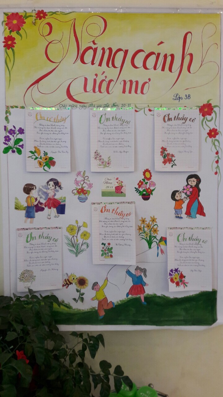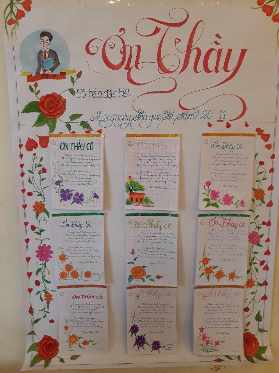 Trong những ngày của tháng 11, các thầy cô giáo ở tất cả các trường học trong cả nước đang sôi nổi với nhiều phong trào, hoạt động để chào mừng ngày Lễ tri ân thầy giáo, cô giáo. Người mang tri thức cho bao nhiêu thế hệ học trò. Ngày 20/11 đã trở thành dịp để các cô cậu học trò thể hiện tình cảm của mình đối với người đã dìu dắt mình khôn lớn. Tình cảm sâu sắc của các em được kết tinh trong mỗi bài thơ, mỗi câu chuyện ngắn đều được trưng bày trên báo tường của từng lớp để người đọc cùng tác giả chia sẻ những xúc cảm, tình cảm của các em học sinh dành tặng những thầy cô kính yêu của mình.
